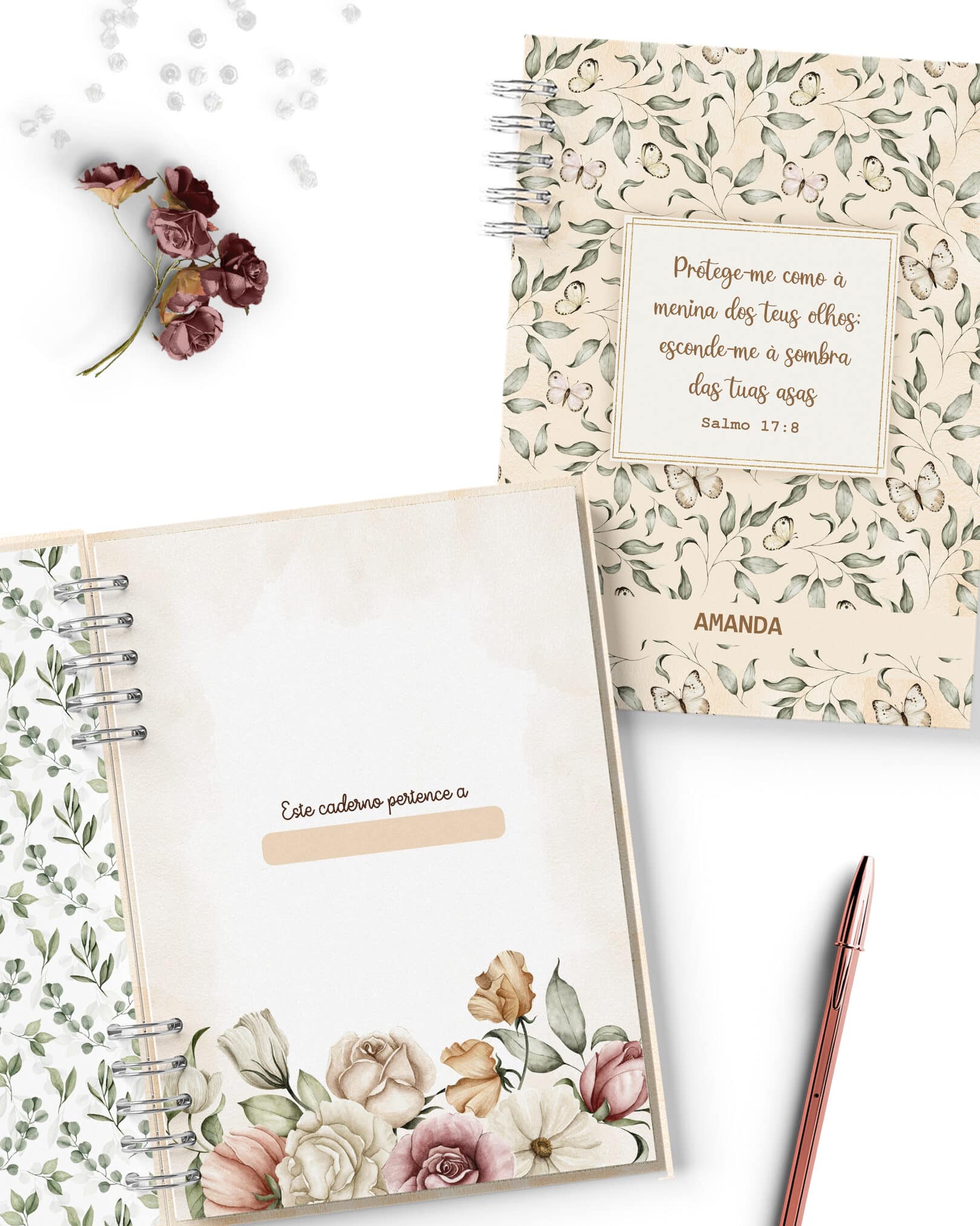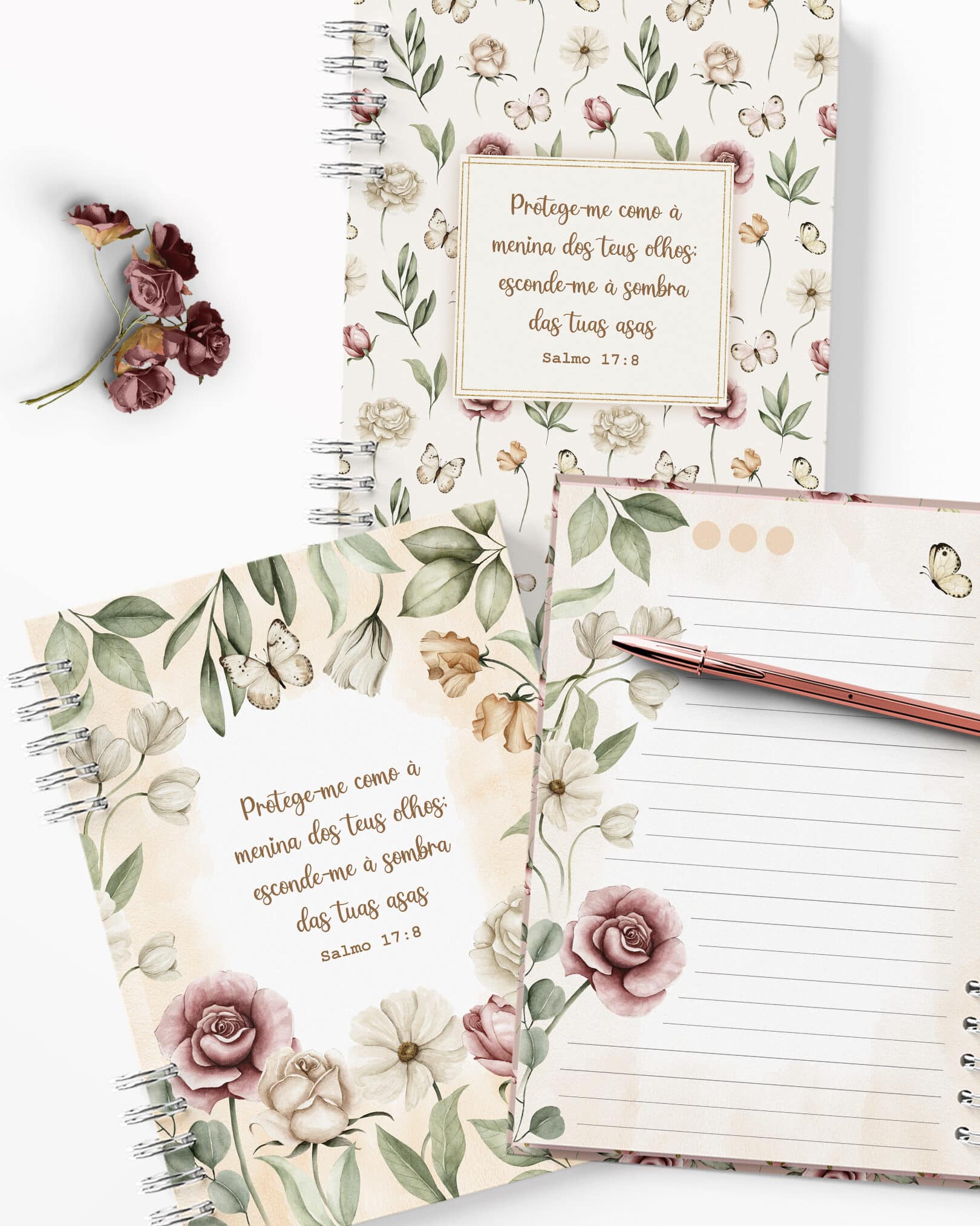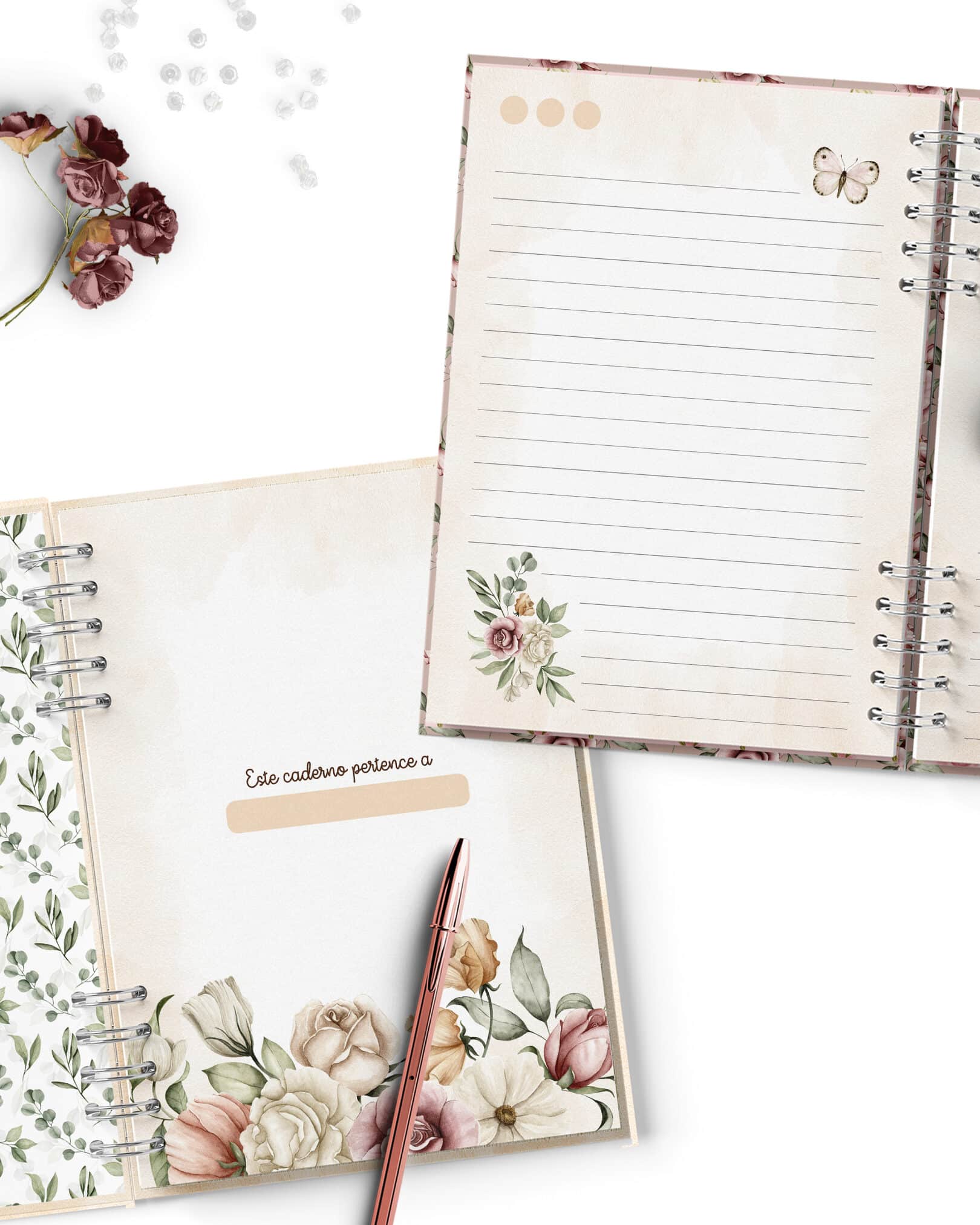 Arquivo Kit 7 Capas e Miolo Pautado Coleção Floral Romântico
